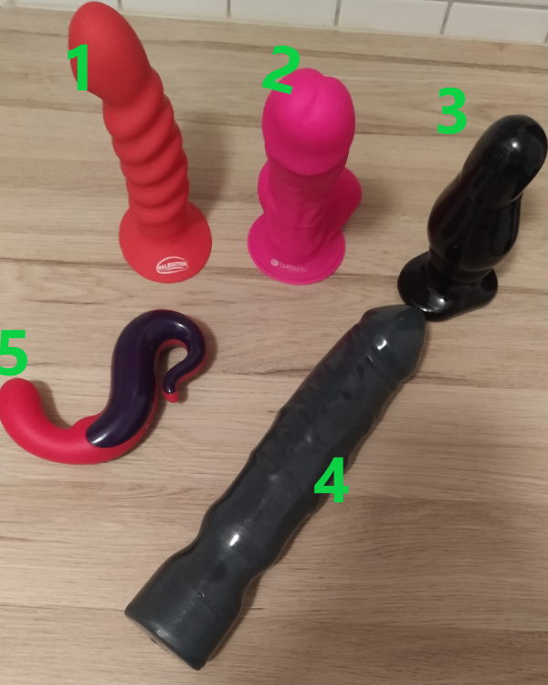 7. 1 - MALESATION "Olly Dildo Groß" in rot Länge: ca. 18,5cm, Ø ca. 5cm Silikon, glatte seidige Oberfläche wie neu 10€ 2 - Lumunu "Deluxe Silikon Real Dong Dildo (500 Gramm)" Gesamtlänge 25 cm, einführbare- Länge Penis Schaft 19 cm, Durchmesser Ø 42-52 mm, Eichel Ø 50,4 mm, Durchmesser Saugnapf Ø 70 mm, Gewicht ca. 500 Gramm, wie neu 10€ 3 - Doc Johnson - "TitanMen - Master Tool 5-6 inch" Länge ca. 16,8cm, Durchmesser max ca. 6,1cm phalatfreies PVC wie neu 10€ 4 - Doc Johnson "American Bombshell Big Boy" Länge ca. 30cm, Durchmesser ca 5,8cm phalatfreies PVC nie benutzt 12€ 5 - Fun Factory "Delight" G-Punkt Vibrator leider fehlt mir der Magnet-Ladeadapter. Dieser ist aber für 9,90€ auf diversen bekannten Onlineshops erhältlich wurde kaum benutzt 11 Vibrationsmodi mit Akku, wiederaufladbar 30€ Wer mehrere Artikel kauft bekommt ab dem ersten Artikel für jeden weiteren 5% Rabatt. (z.B. 1 + 2 + 3 + 4 = 10+10+10+12 = 42€ --> -15% = 35,70€) Versand 4,50€.