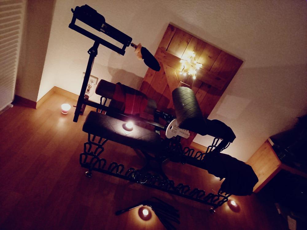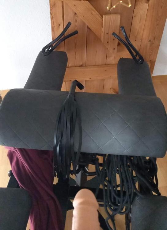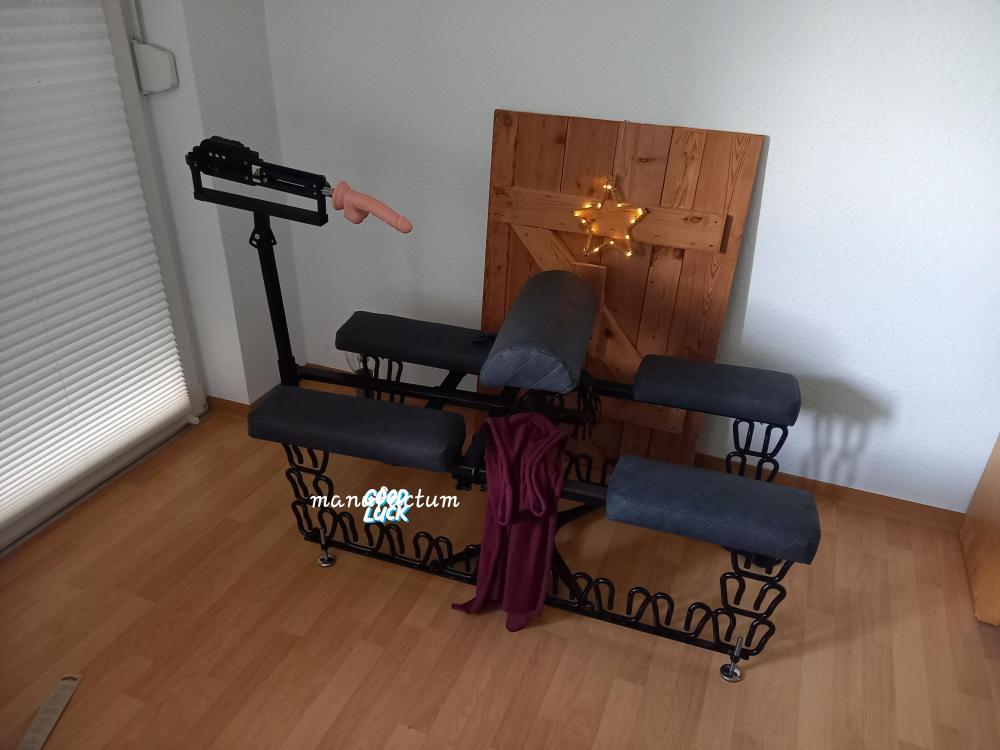Bauchstütze in der Höhe verstellbar, die Halterung für die Dildomaschine ist in der Tiefe und Höhe ca 40 cm verstellbar.