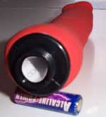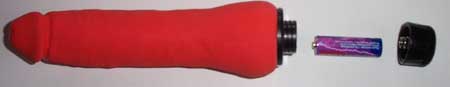 Die Oberfläche ist leicht strukturiert und die Eichel ein wenig ausgearbeitet. Im Inneren der farbigen Latexhülle befindet sich der in Kunststoffschaum eingebettete Motor, der mit einer R6-Batterie gespeist wird.